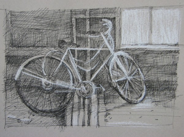 Bicycle Posted on February 10, 2012 by Aleda O'Connor Leave a comment Bicycle, Ste. Irene SOLD 3″x 4″ Bicycle, Ste. Irene QC by Aleda O’Connor 3″ x 4″ Pen, ink and white charcoal on toned paper Like Loading... Previous Next Return to Drawings