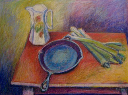 These paintings are all Oil Pastels on panel. My approach is similar to drawing, using every imaginable mark-making technique, from layering and cross hatching, to blending and scratching with tools, my fingers and paint mediums.