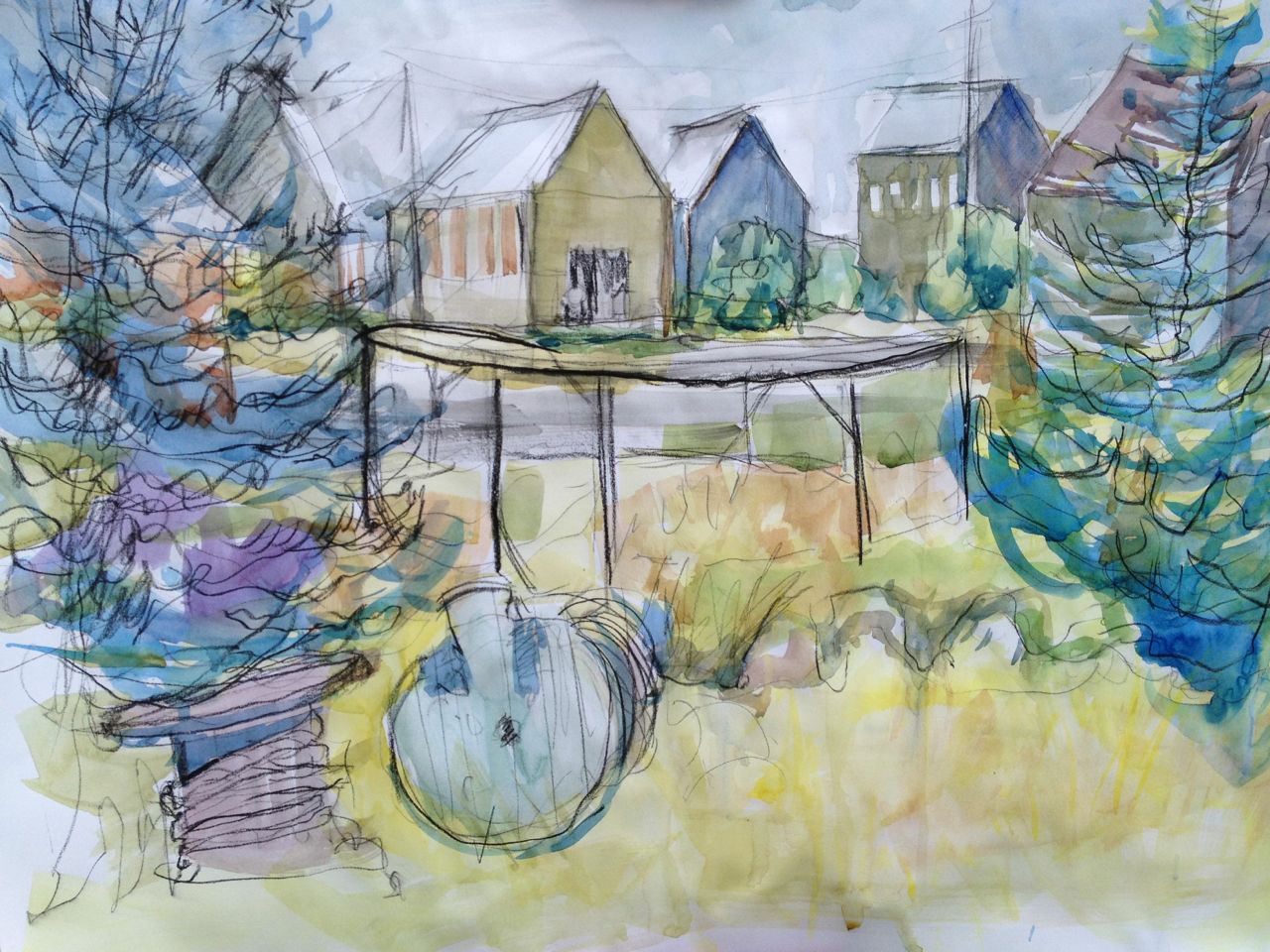 We travelled a lot this spring and summer, in North America and later in Britain. Here are some of the highlights of our trip as recorded in my sketchbooks. In June, I visited Gould Farm, in the Berkshire Mountains of Massachusetts where my friend Rose is a volunteer. She wrote and edited a wonderful cookbook to celebrate the farm’s 100th anniversary as a healing and rehabilitation centre – and to raise money for this marvelous organization.